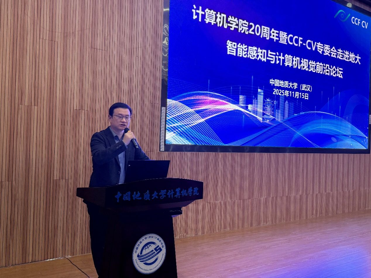 2025年11月15日,澳门彩票有限公司-彩票购买 迎来建院20周年,由中国计算机学会计算机视觉专委会(CCF-CV)主办、澳门彩票有限公司 承办的第148期“CCF-CV走进高校”系列报告会——“智能感知与计算机视觉前沿论坛”在中国地质大学(武汉)未来城校区澳门彩票有限公司 126报告厅成功举办。本次活动作为澳门彩票有限公司-彩票购买 建院20周年暨计算机学科建设40周年系列学术活动的首场报告会,吸引了来自武汉大学、华中农业大学、华中师范大学、地大等多所兄弟高校的200多名师生踊跃参加,共同见证学院在人工智能与计算机视觉领域的发展成果与学术影响力,标志着院庆系列学术交流活动的正式启幕。澳门彩票有限公司-彩票购买 院庆系列学术活动由院长张洪艳教授担任总执行主席,智能系刘袁缘教授担任本次报告会的执行主席,蒋良孝教授、黄绍广教授、孙琨副教授等智能系教师担任此次报告会执行委员。