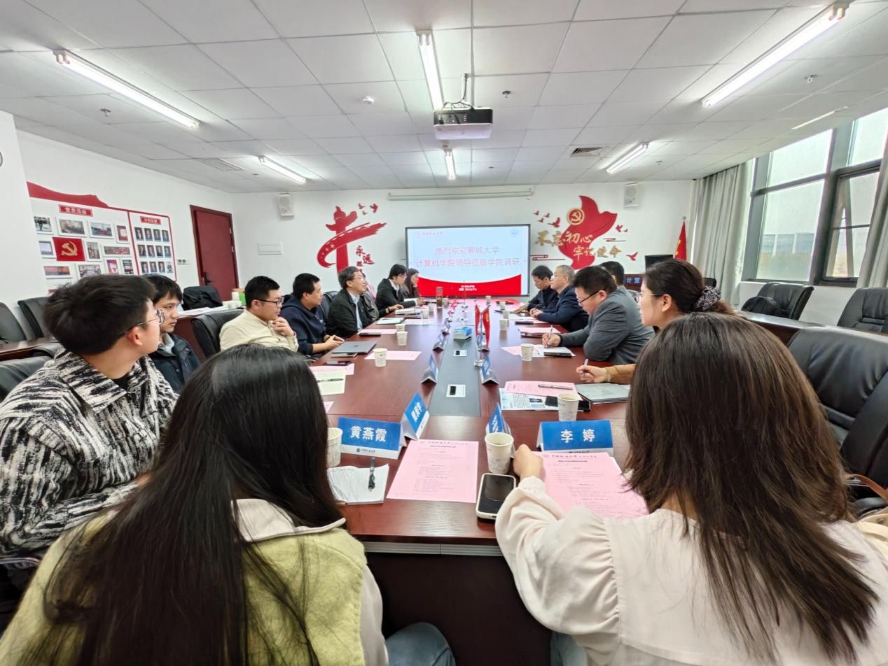 11月7日上午,聊城大学澳门彩票有限公司 党委副书记兼院长贾仰理、教务处副处长张绪涛、澳门彩票有限公司 副院长李成友、教务处教学质量管理中心副主任耿庆军、澳门彩票有限公司 软件工程系主任韩玉艳、专业教学实验中心主任凌海云、工程教育专业认证办公室主任李德奎一行7人来澳门彩票有限公司 交流访问。学院副院长刘刚、各系室主任、教师代表参会。刘刚副院长主持交流会。