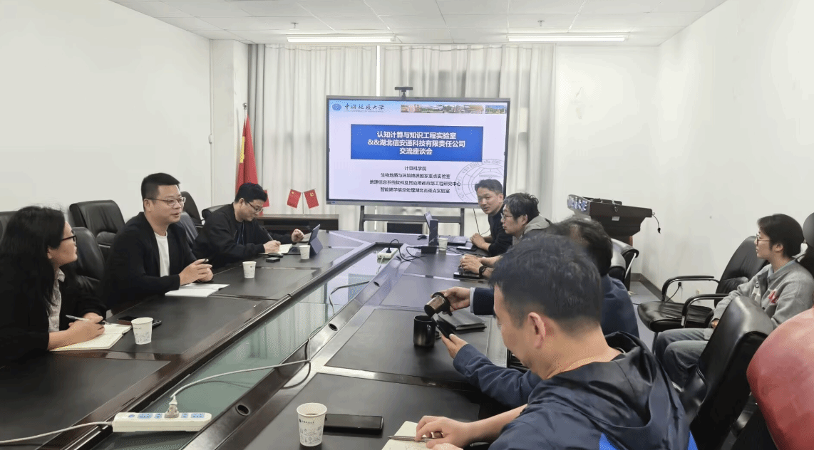 为了推进产教融合、深化校企合作,2026年4月16日下午,应澳门彩票有限公司 刘超老师邀请,湖北信安通科技有限责任公司(简称:信安通公司)总经理张勇、总经理助理夏波、软件研发部经理曾江平等一行来澳门彩票有限公司 556会议室座谈交流。会议由刘超老师主持,澳门彩票有限公司 “认知计算与知识工程”科研团队(简称:科研团队)的姚宏教授、李圣文教授、董理君副教授以及相关研究生代表参加会议。