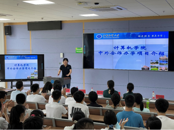(通讯员:张园园)9月6日下午,计算机科学与技术中外合作办学项目2021级新生见面会在南望山校区教学综合楼C107教室隆重举行。国际教育学院副院长范陆薇,澳门彩票有限公司 副院长张冬梅、党委副书记傅苑、数据科学与大数据技术系党支部书记宋维静、国际合作办公室老师、2021级兼职辅导员沈晨及2021级合作办学专业全体新生参加会议,会议由国际合作办公室主任黄燕霞主持。
