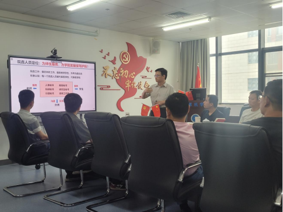 学院党委书记李国昌谈了学习体会。他指出,院长的党纪学习教育课紧密结合中央党纪学习教育要求、学院发展“提质增效”的年度主题以及院直队伍发展实际,准备充分、内容丰富、思想深刻,既直击院直队伍痛处,红脸出汗,又指明未来发展之路,醒脑提神。院长的用心分享说明学院很在意院直这支部队伍,对院直队伍存在的不足很着急,对院直队伍的未来很期待,提出的工作要求也很具体,希望大家按照岗位职责和院长要求,一要很珍惜现在的工作机会,增强敬畏之心和荣誉感;二要很紧迫地主动查摆工作不足,即查即改,提高管理服务能力和师生满意度;三要很用心地工作、总结和思考,提高专业化、职业化水平,做成学院这个领域的权威;四对自己很有信心,在自己的加倍努力、学院的关心培育及院直团队的互相帮助下,一定能完成好各项工作任务。