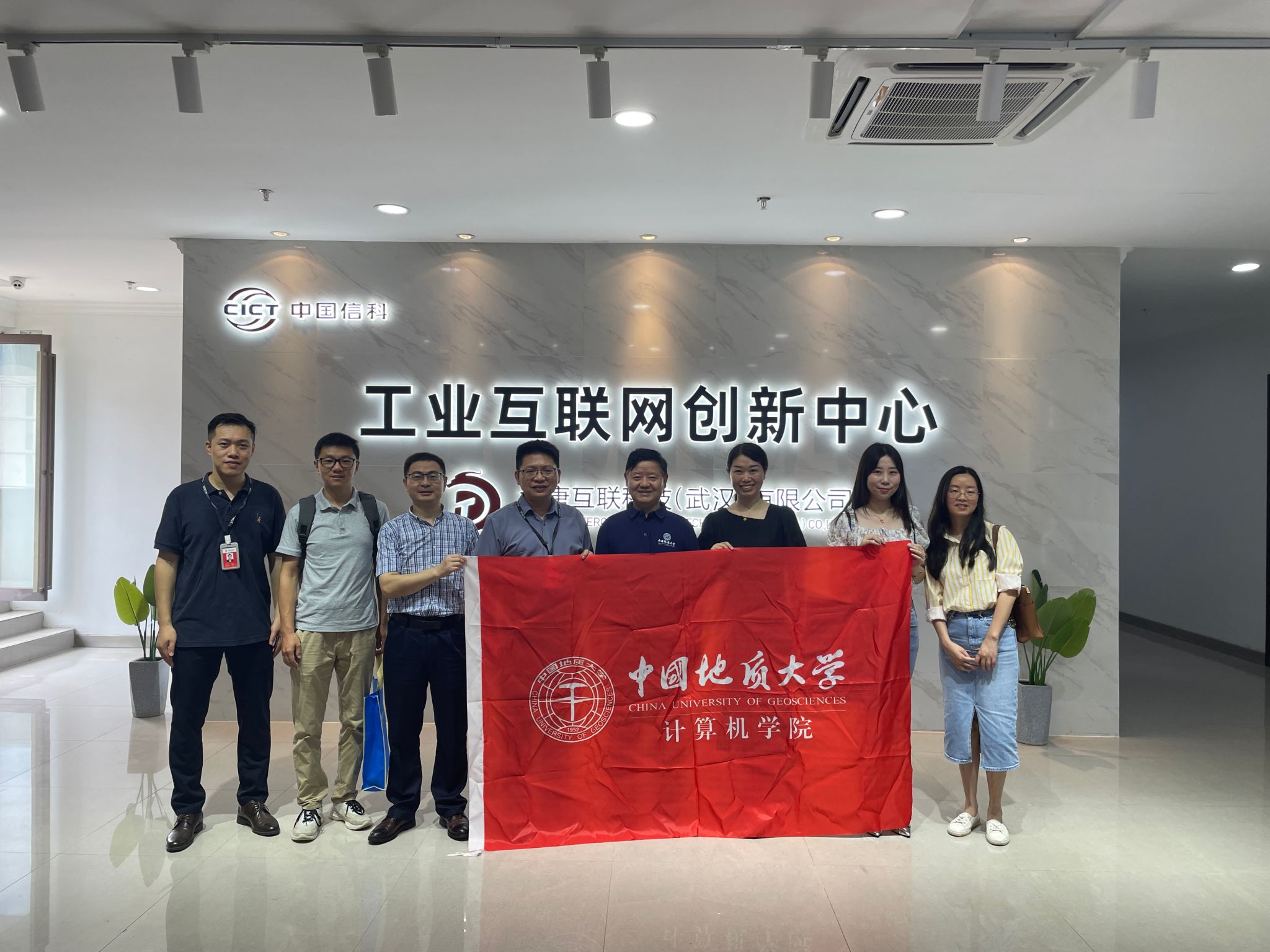 为促进学院实习实训和就业工作,8月2日,澳门彩票有限公司 党委书记李国昌、党委副书记林小艳、学院团委副书记孙琨、人工智能系教师刘袁缘、办公室主任卢笙一行5人,赴大唐互联科技(武汉)有限公司开展工作调研和访企拓岗活动。