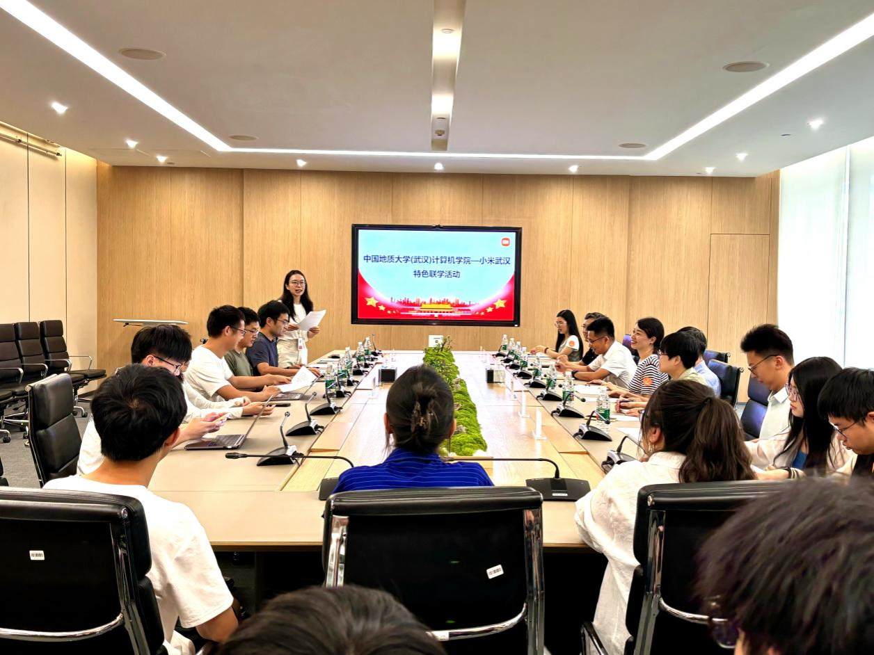 为进一步深入贯彻落实2024年教育部办公厅关于高校“访企拓岗促就业”专项行动要求,积极推动毕业生高质量就业。8月13日,中国地质大学(武汉)团委书记朱丹、澳门彩票有限公司 副院长刘刚、党委副书记林小艳、信息安全系党支部书记马钊、软件工程系副教授杨林权、研究生辅导员李欢欢、本科生辅导员谭文博、刘佳丹一行走访小米集团武汉总部,看望在小米实习的同学,并与小米武汉智能数据云党支部开展党建联学特色主题党日活动。
