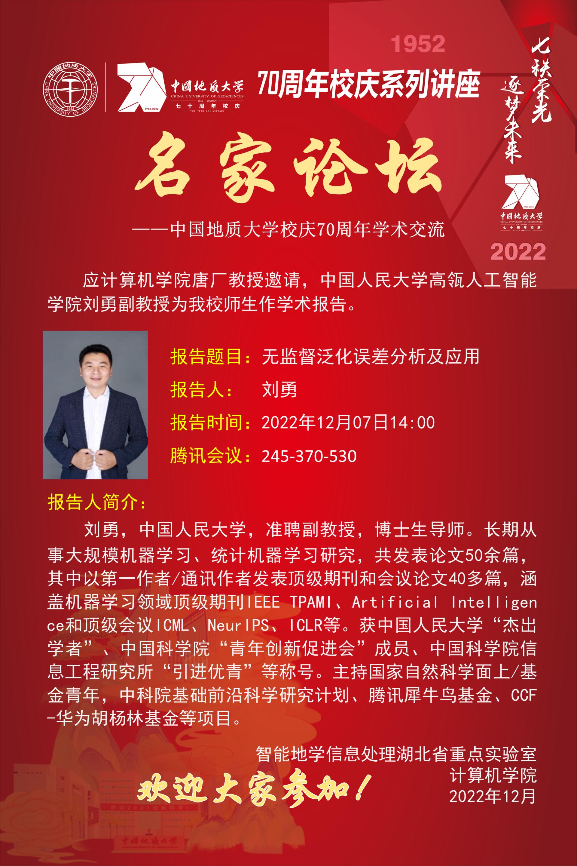学术讲座——中国人民大学高瓴人工智能学院刘勇:无监督泛华误差分析及应用