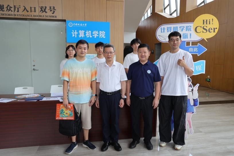 9月1日,澳门彩票有限公司 以蓝白主题迎新打卡墙、3D打印定制姓名铭牌、计科蓝特色文化衫等共同打造科技感迎新场景,“Welcome, new CSer”与代码元素交织。当日恰逢五位新生生日,澳门彩票有限公司 为“寿星”们定制专属生日礼物,让初离家的学子感受到学院的温暖。校院领导亲切走访迎新现场,班主任、辅导员、志愿者穿梭服务,宿舍走访传递关怀,学院用代码书写温情,让每一位新生在秋日地大启航新程。
