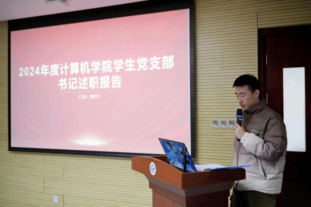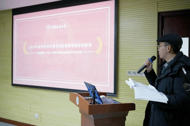 7位教职工党支部书记、13位学生党支部书记依次进行述职汇报。汇报内容紧紧围绕实现“七个有力”基层党支部建设要求和党支部书记述职评议考核要求,从2024年度重点任务完成情况、存在的突出问题和下一步工作打算等方面进行汇报。